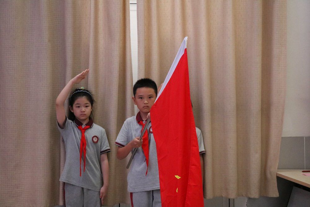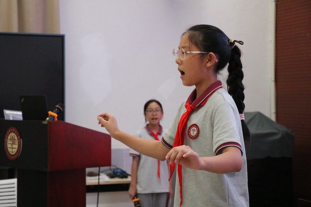 “我们是共产主义接班人......””在指挥张雨萱的带领下,全场少先队员齐声高唱《中国少年先锋队队歌》,嘹亮的歌声回荡在会场,表达了少先队员们继承革命先辈光荣传统,为实现中华民族伟大复兴的中国梦而努力的坚定决心。