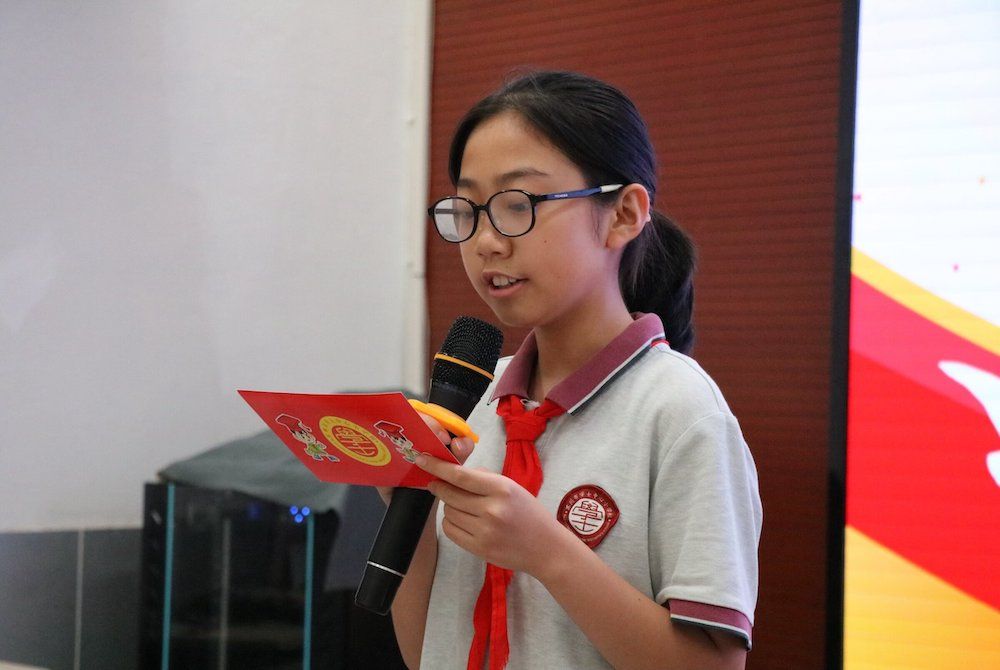 上届大队委钱梦湉作少先队工作报告,回顾学校少先队过去一学年取得的成果,提出新一年的前进目标,号召队员们树立理想、坚定信念,以更高的热情让星星火炬更加灿烂。